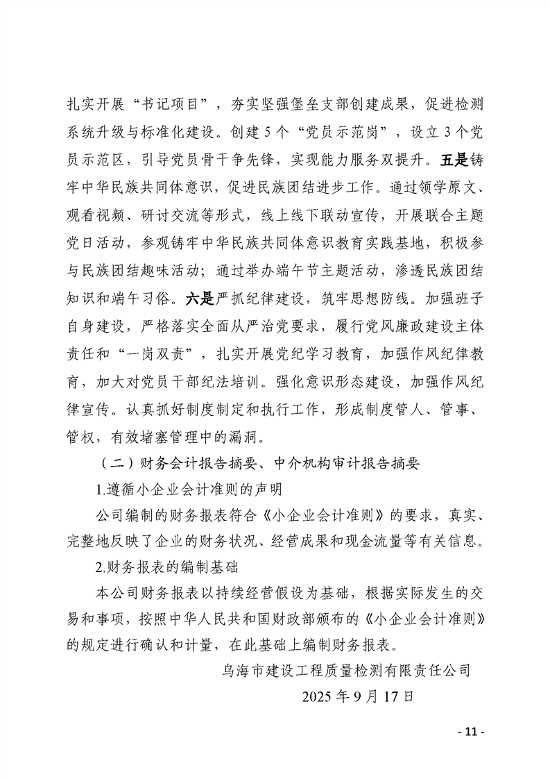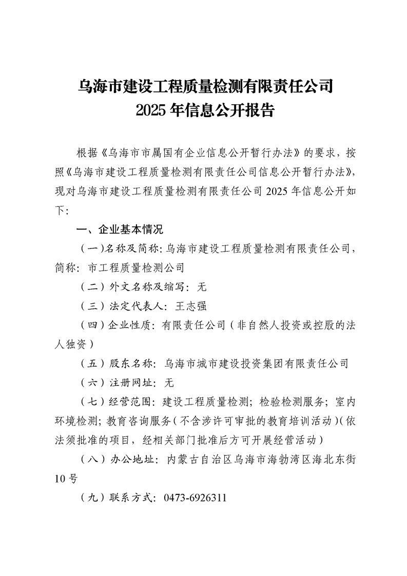 烏海市建設(shè)工程質(zhì)量檢測(cè)有限責(zé)任公司2025年二季度信息公開