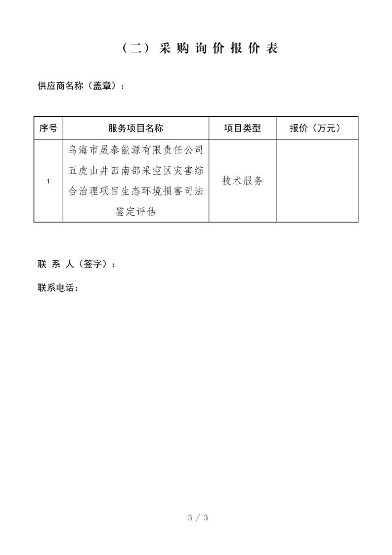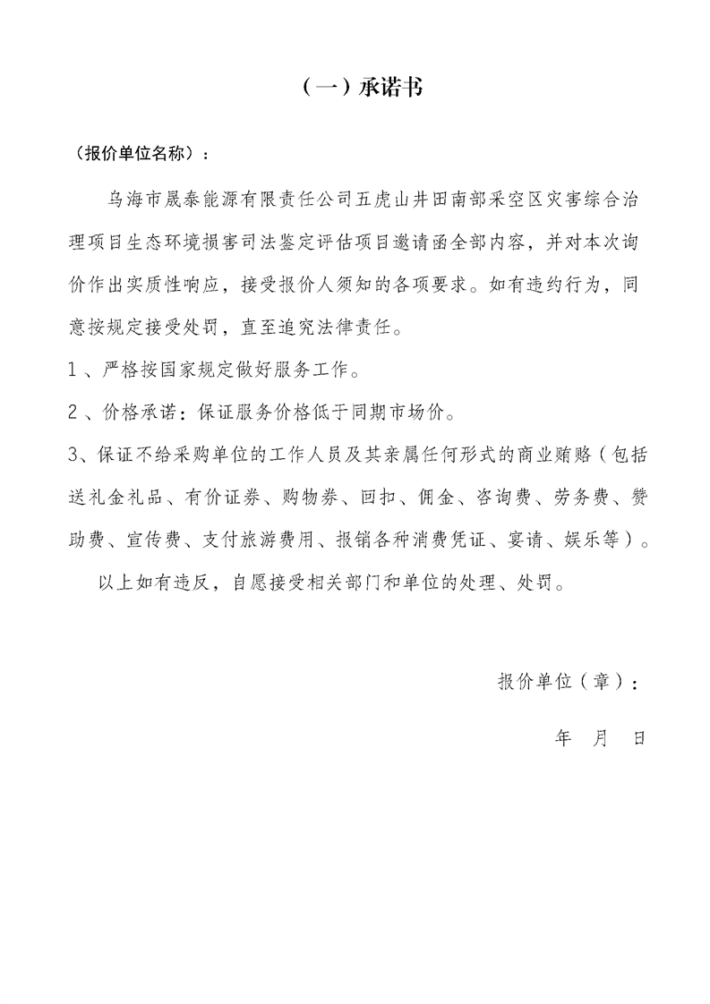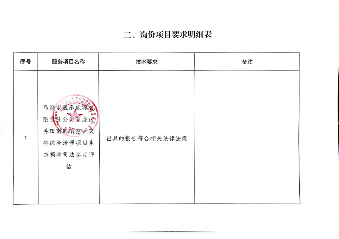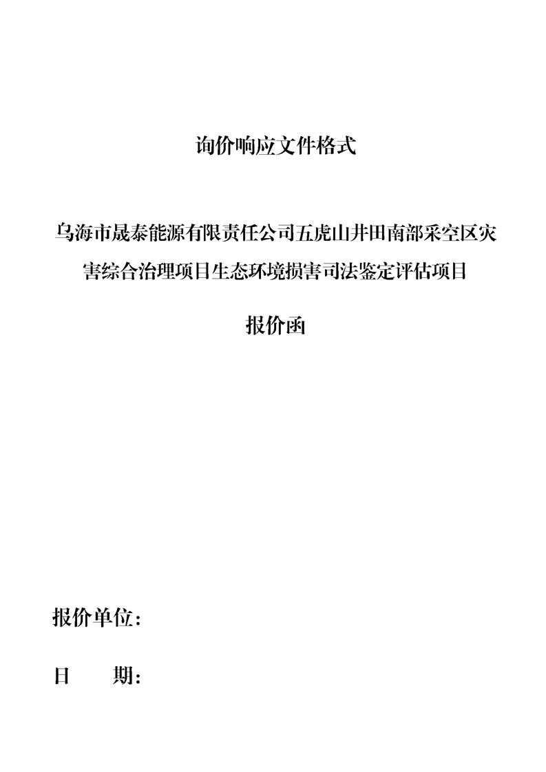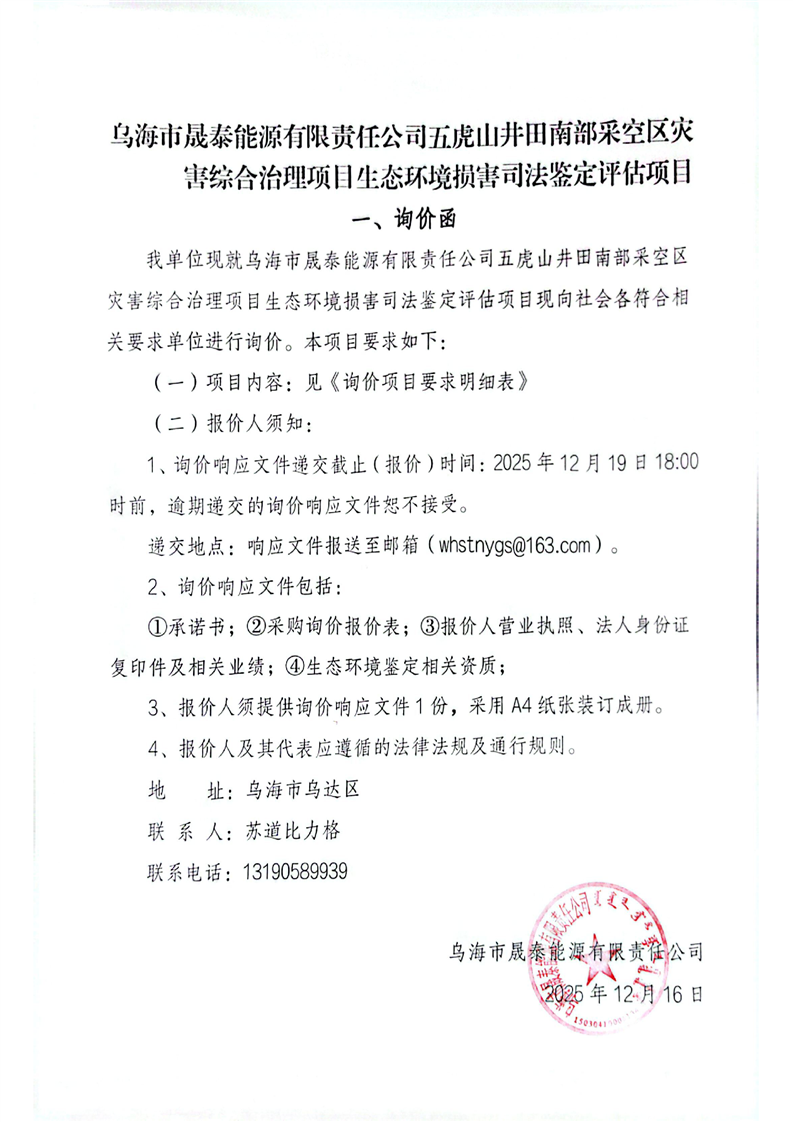 烏海市晟泰能源有限責(zé)任公司五虎山井田南部采空區(qū)災(zāi)害綜合治理項(xiàng)目生態(tài)環(huán)境損害司法鑒定評(píng)估項(xiàng)目詢價(jià)公告